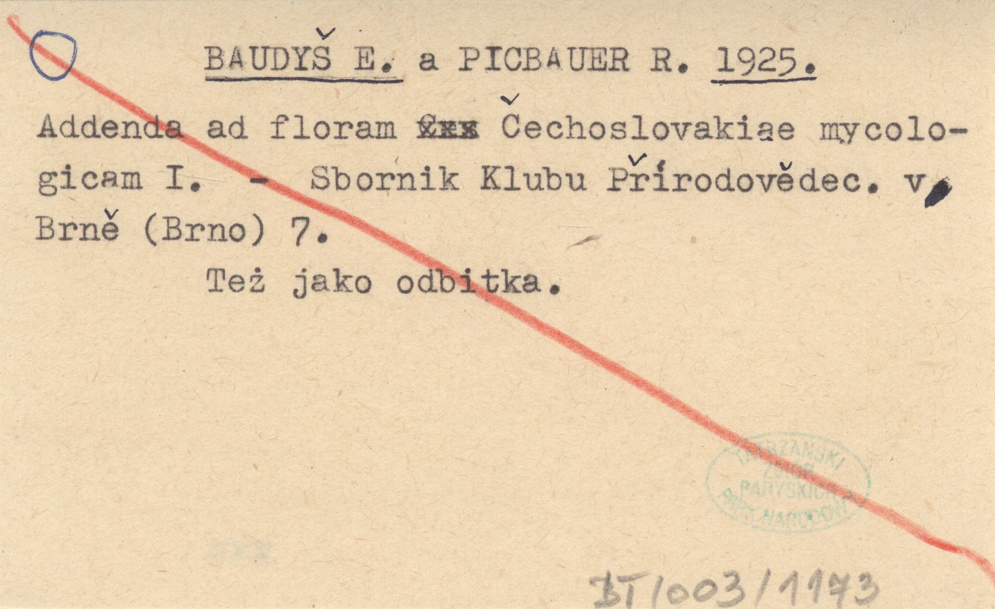 BAUDYŠ E. PICBAUER, R. ; 1925 Addenda ad floram Čechoslovakiae mycologicam I.