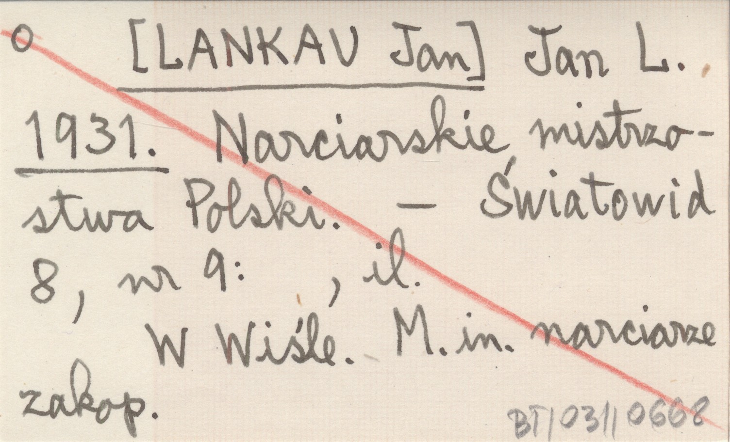 Jan L. [LANKAU Jan] 1931 Narciarskie mistrzostwa Polski.