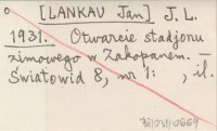 J. L. [LANKAU Jan] 1931 Otwarcie stadjonu zimowego w Zakopanem.