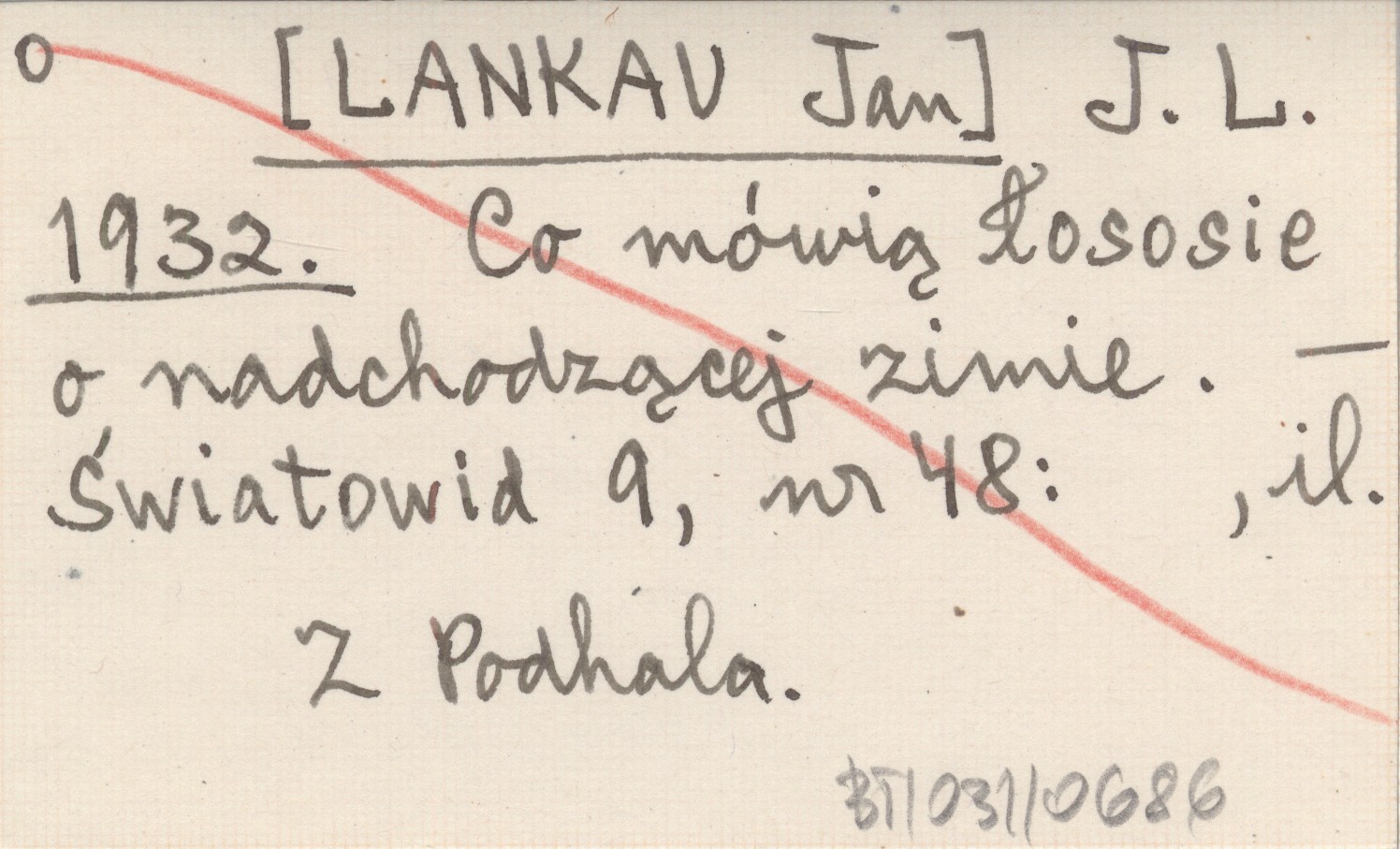 J. L. [LANKAU Jan] 1932 Co mówią łososie o nadchodzącej zimie.