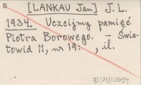 J. L. [LANKAU Jan] 1934 Uczcijmy pamięć Piotra Borowego.