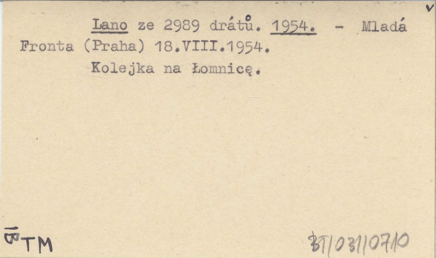 Mladá Fronta (Praha) , 18 VIII 1954. Kolejka na Łomnicę.