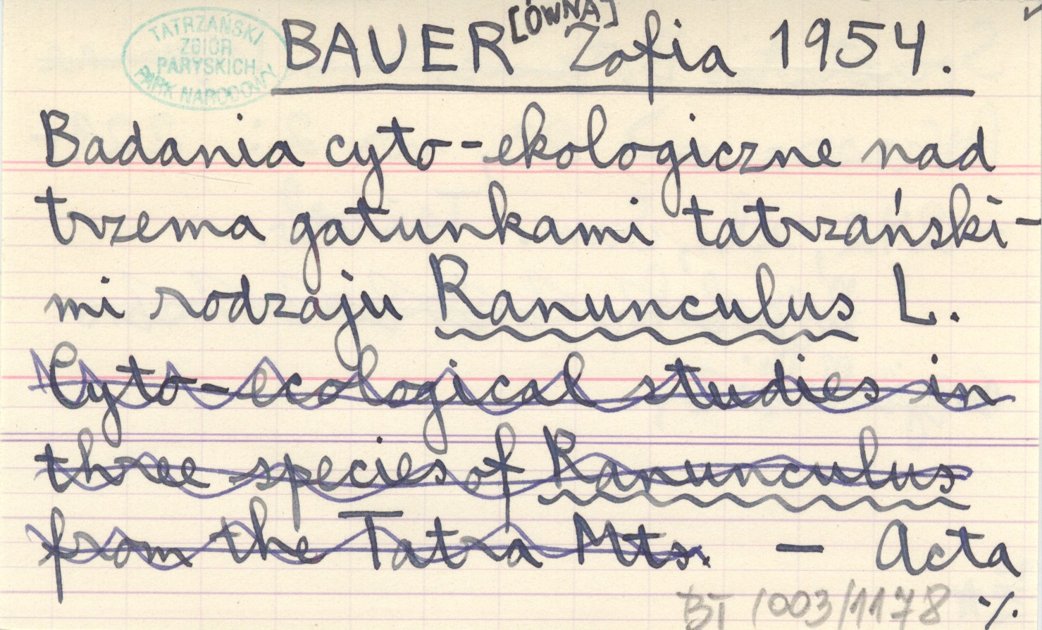 BAUER[ÓWNA] Zofia 1954 Studia cyto-ekologiczne nad trzema gatunkami tatrzańskimi Ranunculus.