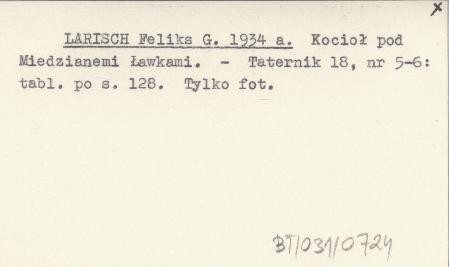 LARISCH Feliks G. 1934 a Kocioł pod Miedzianemi Ławkami.