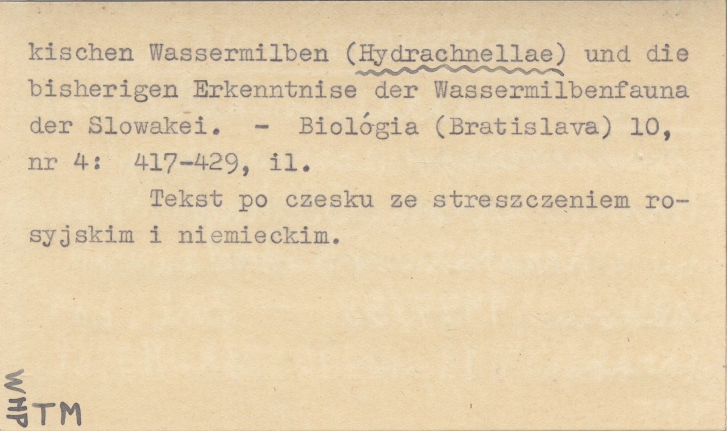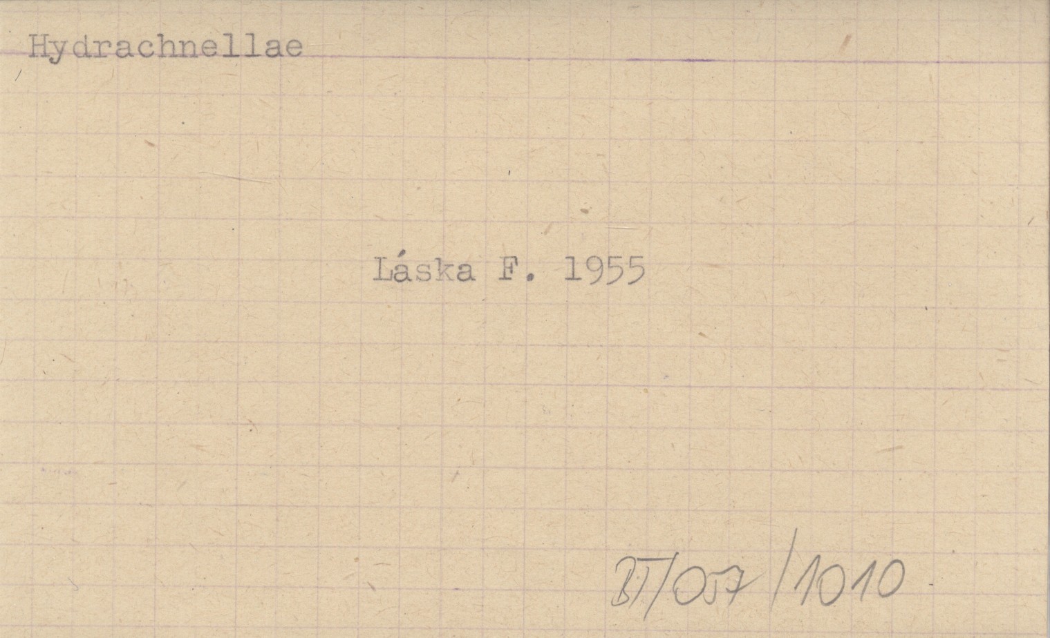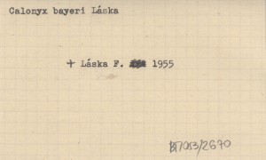 LÁSKA Frantiček 1955 Pűíspìvek k poznání slovenskęch vodulí (Hydrachnellae) a dosavadní znalosti fauny vodulí slovenskęch vod. Materialy k poznaniju vodjanych klečej (Hydrachnellae) Slovakii i obzor imejučichcja svedenij po faune ztoj oblasti. Beitrag zur Kenntnis der slowakischen Wassermilben (Hydrachnellae) und die bisherigen Erkenntnise der Wassermilbenfauna der Slowakei.