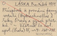 LÁSKA František 1954 Příspěvek k poznáni fauny voduli (Hydrachnellae) řeky Oravy a jejich přitoků.