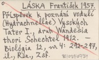 LÁSKA František 1957 Příspěvek k poznání vodulí (Hydrachnellae) Vysokých Tater I., druh Wandesia thori Schechtel 1912.