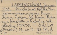 LASKIEWICZÓWNA Janina 1938 Działalność Kółka Krajoznawczego uczennic Pryw. Gimn. Zgrom. SS. Najśw. Rodziny z Nazaretu w Rabce za rok szkolny 1937/38.