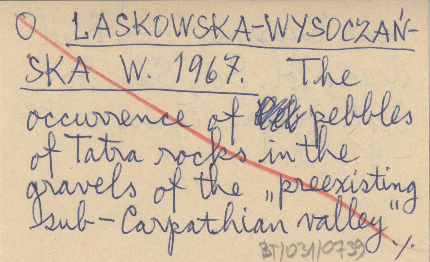 LASKOWSKA-WYSOCZAŃSKA W. 1967 The occurrence of pebbles of Tatra rocks in the gravels of the "preexisting sub-Carpathian valley" near Rzeszów.
