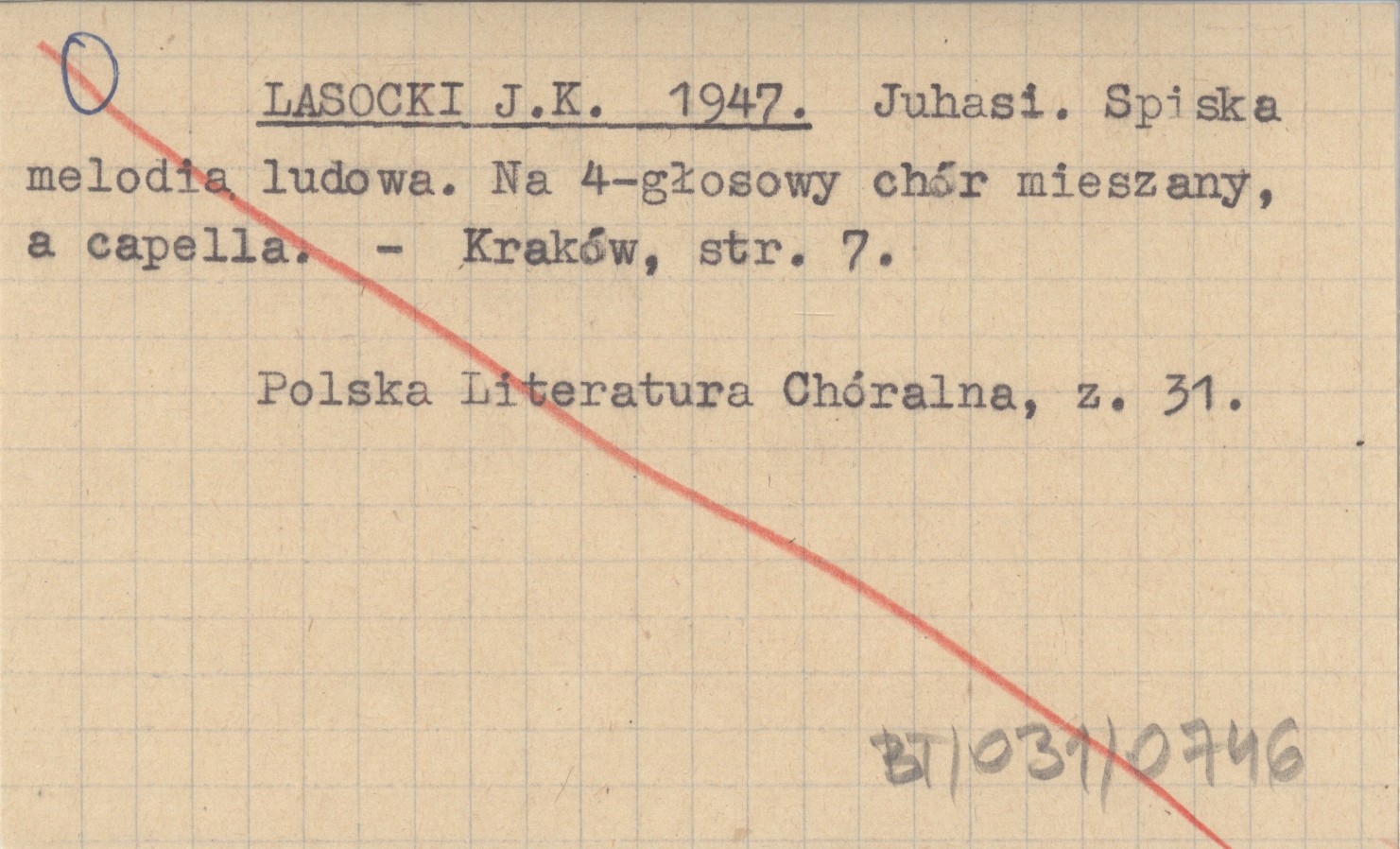 LASOCKI J. K. 1947 Juhasi. Spiska melodia ludowa. Na 4-głosowy chór mieszany, a capella.