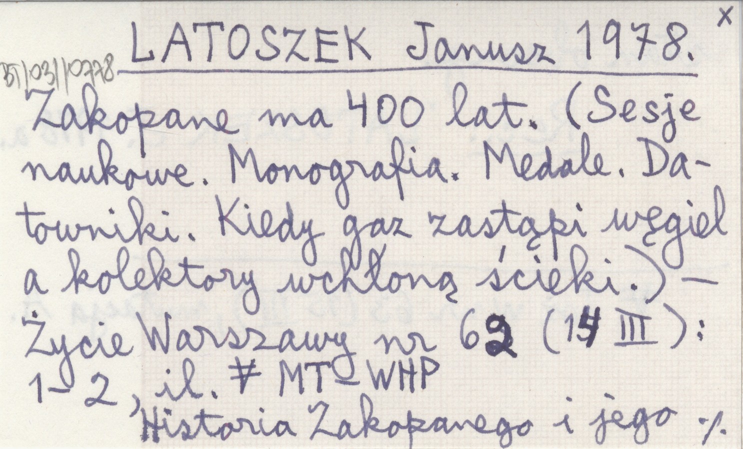 Życie Warszawy, Nr 62 (14 III): 1-2, il. Historia Zakopanego i jego stan obecny. Toż w nr 63 (15 III), mutacja A. REC: LATOSZEK J. 1978 a