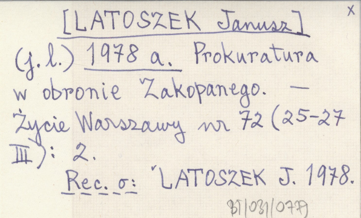 (j. l.) [LATOSZEK Janusz] 1978 a Prokuratura w obronie Zakopanego.