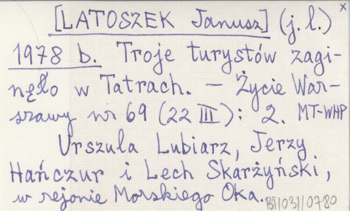 (j. l.) [LATOSZEK Janusz] 1978 b Troje turystów zaginęło w Tatrach.