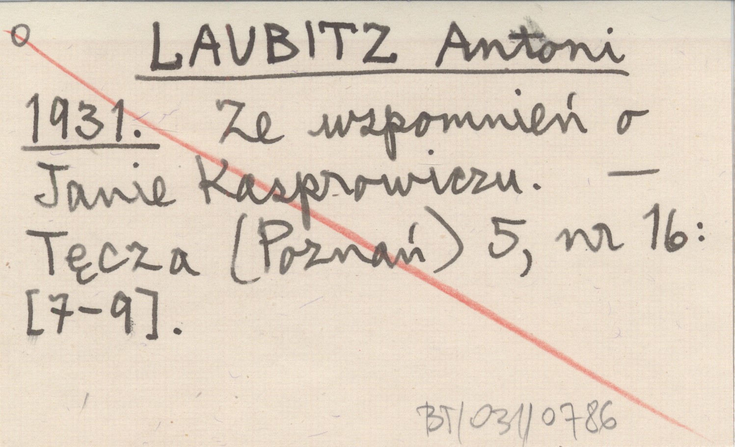 LAUBITZ Antoni 1931 Ze wspomnień o Janie Kasprowiczu.