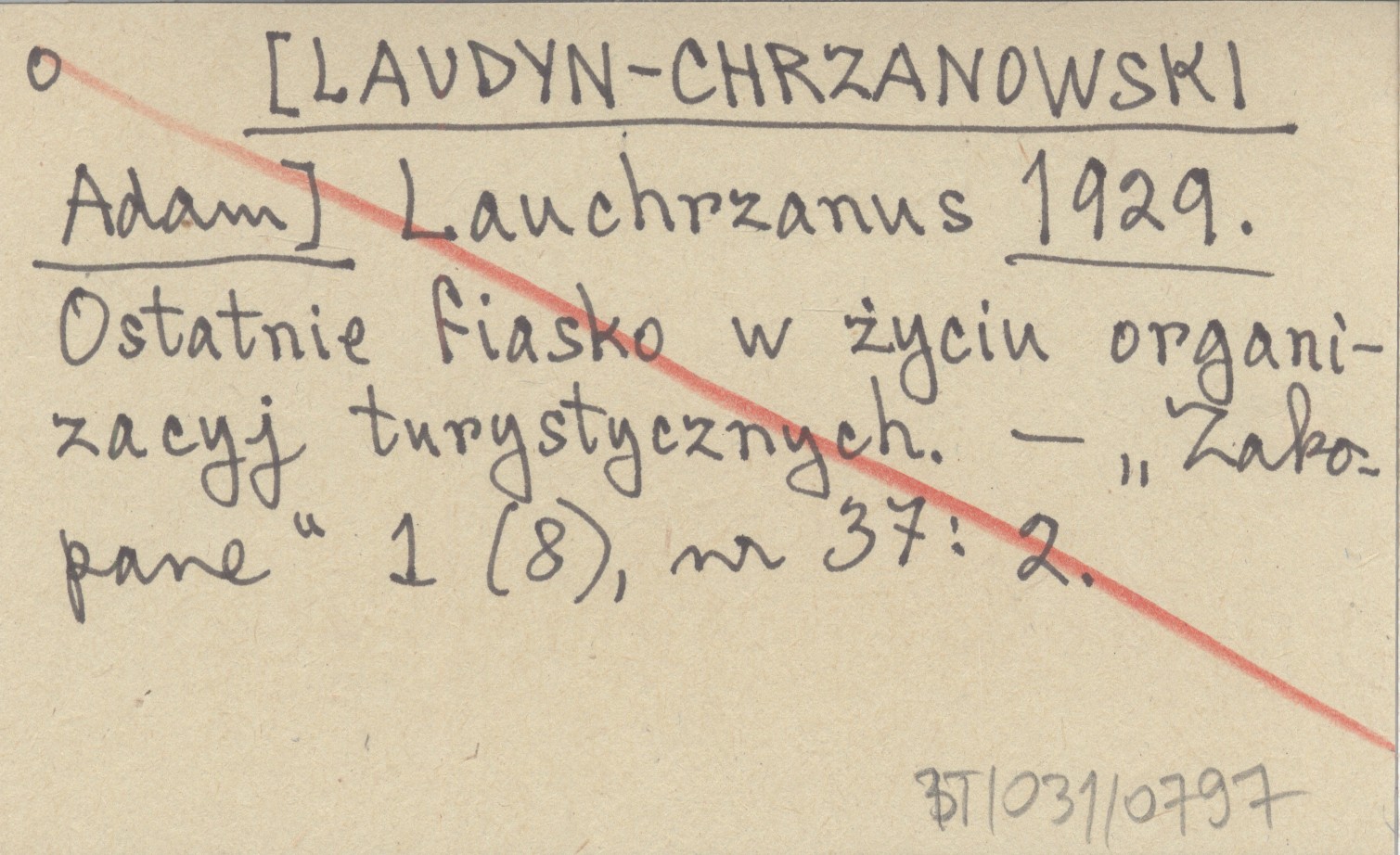 Lauchrzanus [LAUDYN-CHRZANOWSKI Adam] 1929 Ostatnie fiasko w życiu organizacyj turystycznych.