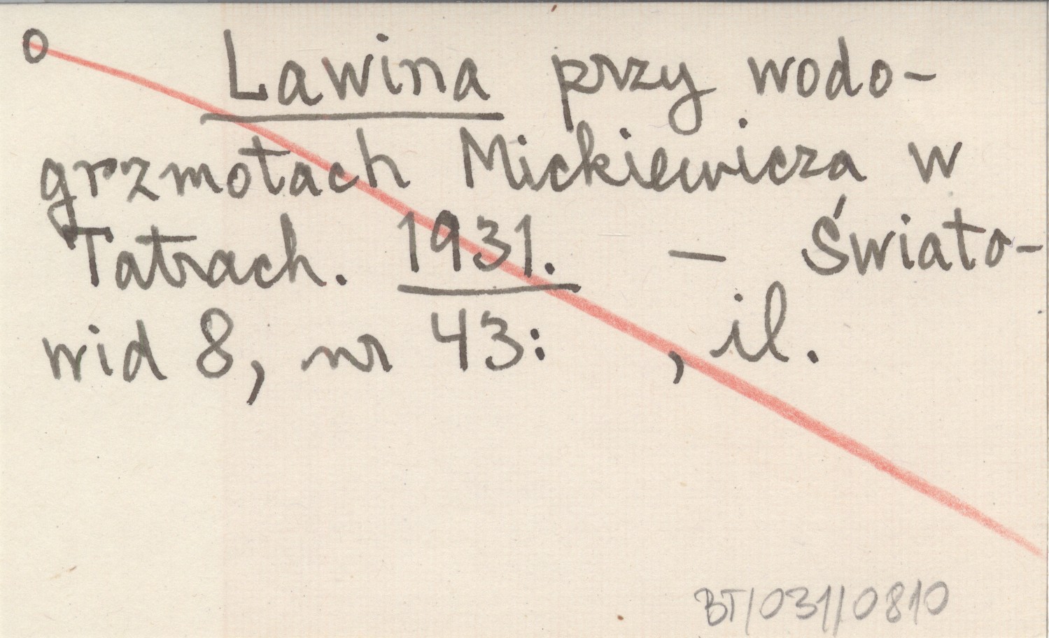 Lawina przy wodogrzmotach Mickiewicza w Tatrach. 1931