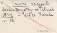 Lawina zasypała kilku turystów w Tatrach. 1934