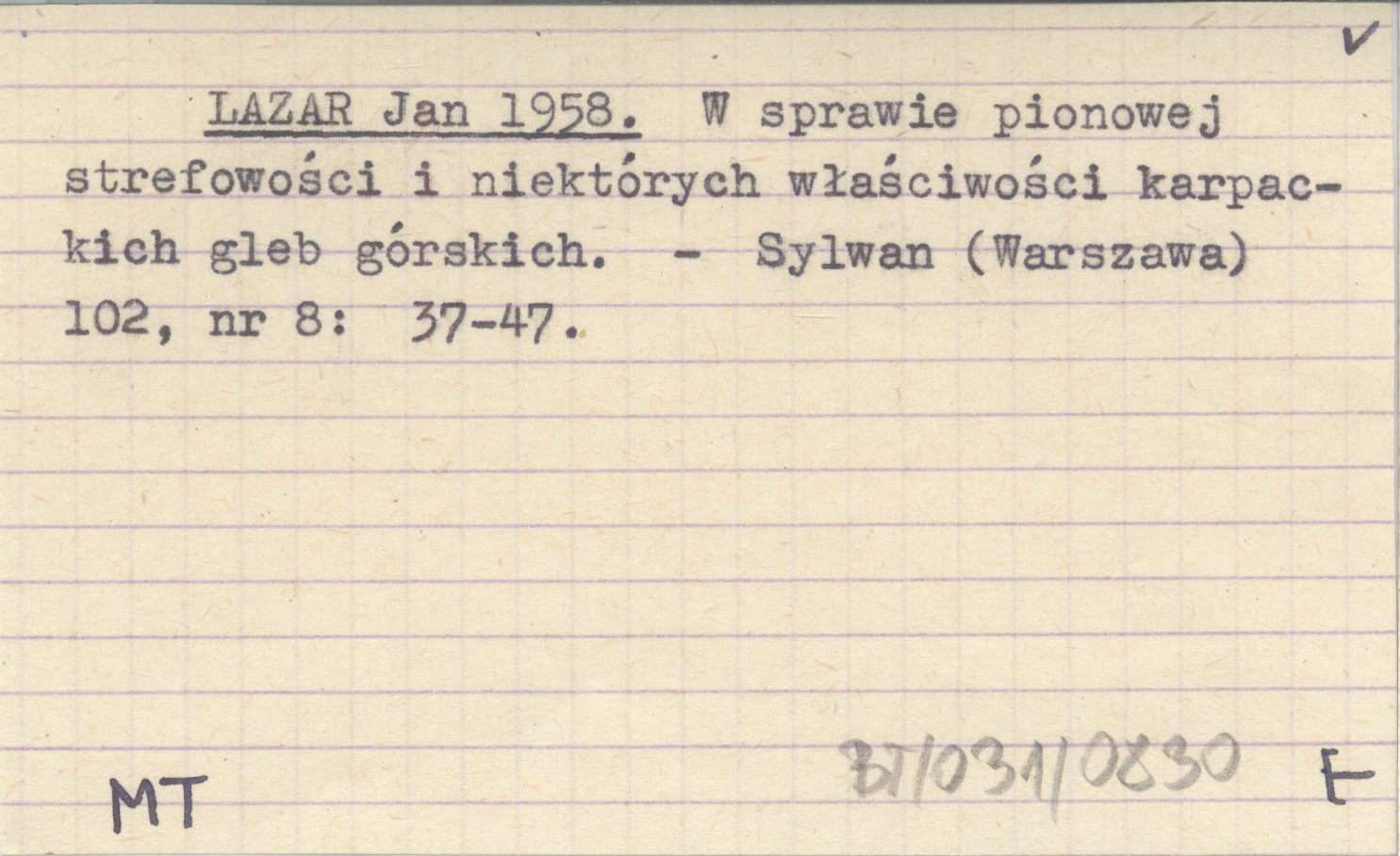 LAZAR Jan 1958 W sprawie pionowej strefowości i niektórych właściwości karpackich gleb górskich.