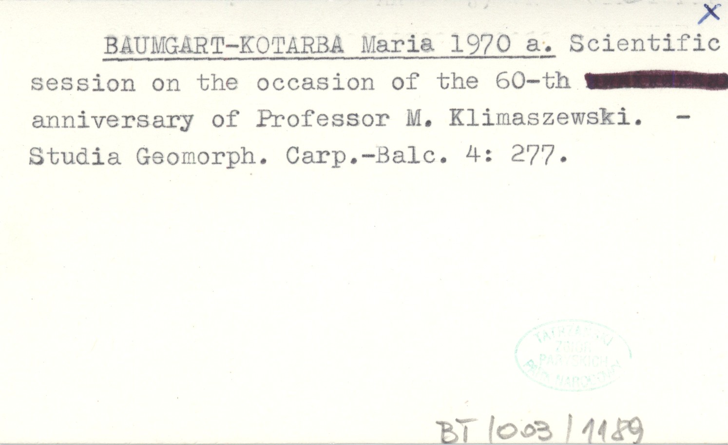 BAUMGART-KOTARBA Maria 1970 a Scientific session on the occasion of the 60-th anniversary of Professor M. Klimaszewski.