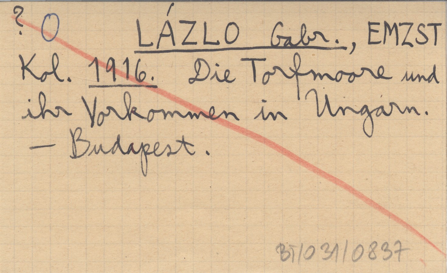 LÁZLO Gabr. EMZST, Kol. ; 1916 Die Torfmoore und ihr Vorkommen in Ungarn.
