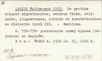 LAZIUS Wolfgangus 1555 De gentium aliquot migrationibus, sedibus fixis, reliquiis, linguarumque, initiis et immutationibus ac dialectis libri XII.