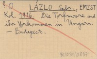 LÁZLO Gabr. EMZST, Kol. ; 1916 Die Torfmoore und ihr Vorkommen in Ungarn.
