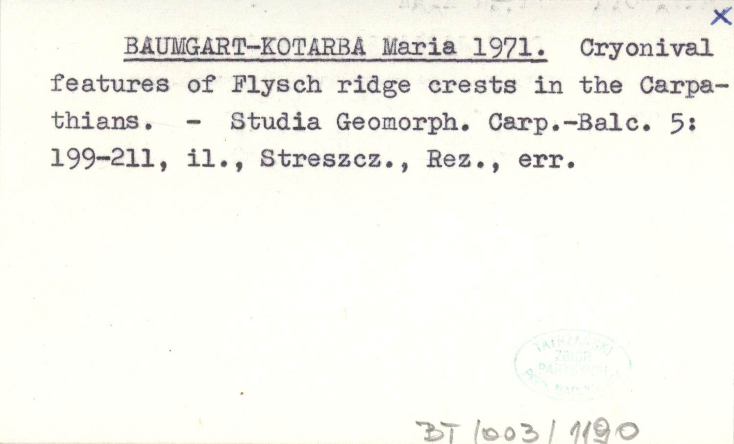 BAUMGART-KOTARBA Maria 1971 Cryonival features of Flysch ridge crets in the Carpathians.
