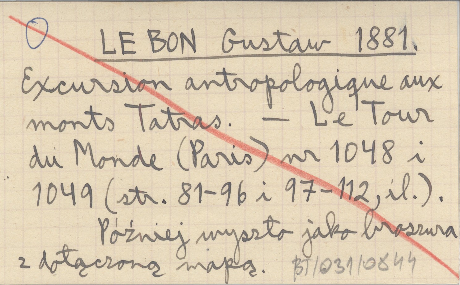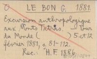 LE BON Gustaw 1881 Excursion antropologique aux monts Tatras.