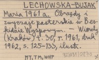 LECHOWSKA-BUJAK Maria 1961 a Obrzędy i zwyczaje pasterskie w Beskidzie Wyspowym.