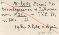 50-lecie Stacji Meteorologicznej w Zakopanem. 1926