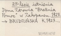 25-lecie istnienia Domu Zdrowia "Bratnia Pomoc" w Zakopanem. 1927
