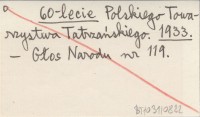 60-lecie Polskiego Towarzystwa Tatrzańskiego. 1933