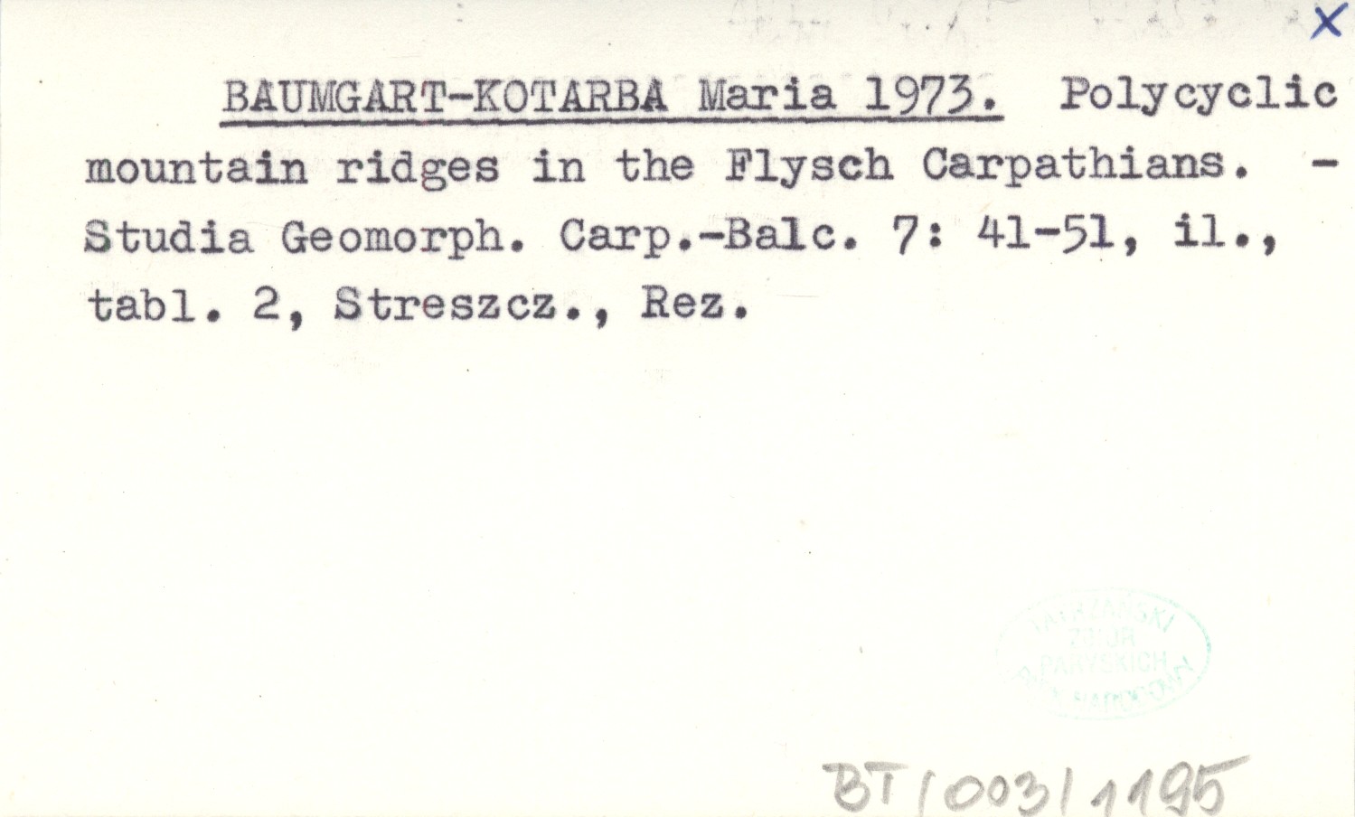 BAUMGART-KOTARBA Maria 1973 Polycyclis mountain ridges in the Flysch Carpathians.