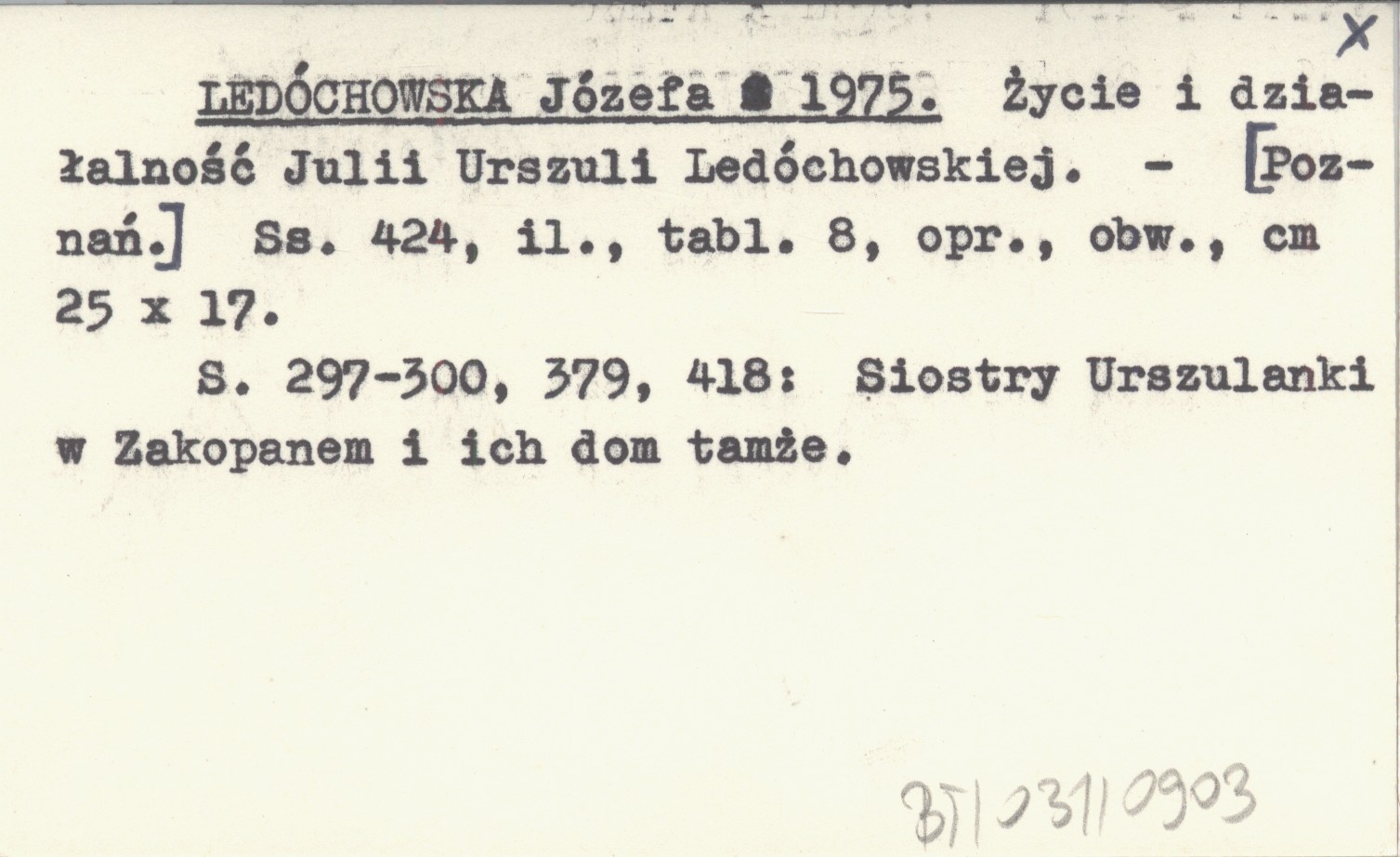 LEDÓCHOWSKA Józefa 1975 Życie i działalność Julii Urszuli Ledóchowskiej.