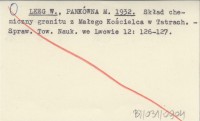 LEEG W. PANKÓWNA, M. ; 1932 Skład chemiczny granitu z Małego Kościelca w Tatrach.
