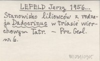 LEFELD Jerzy 1956... Stanowisko liliowców z rodzaju Dadocrinus w triasie wierchowym Tatr.