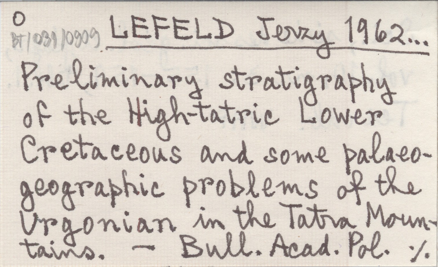 LEFELD Jerzy 1962... Preliminary stratigraphy of the High-tatric Lower Cretaceous and some palaeogeographic problems of the Urgonian in the Tatra Mountains.