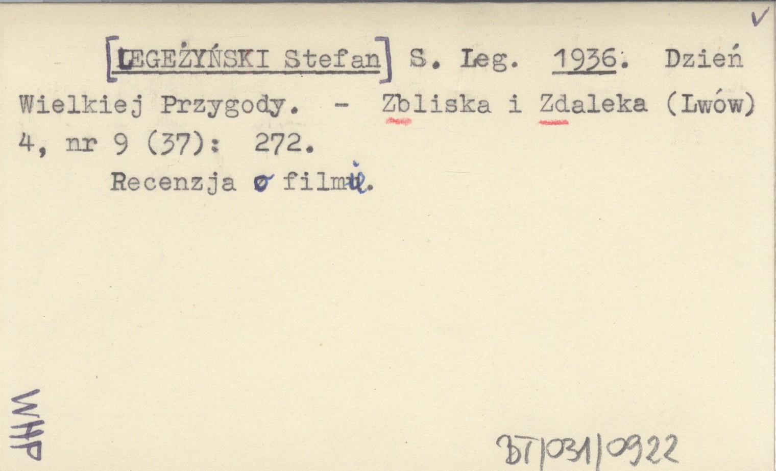 S. Leg. [LEGEŻYŃSKI Stefan] 1936 Dzień Wielkiej Przygody.