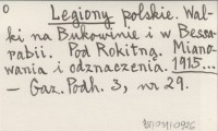 Legiony polskie. Walki na Bukowinie i w Bessarabii. Pod Rokitną. Mianowania i odznaczenia. 1915...