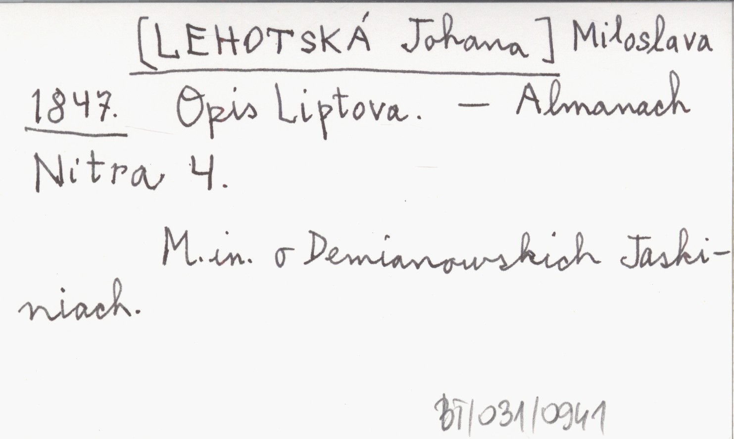 Almanach (Nitra) , 4. M. in. o Demianowskich Jaskiniach.