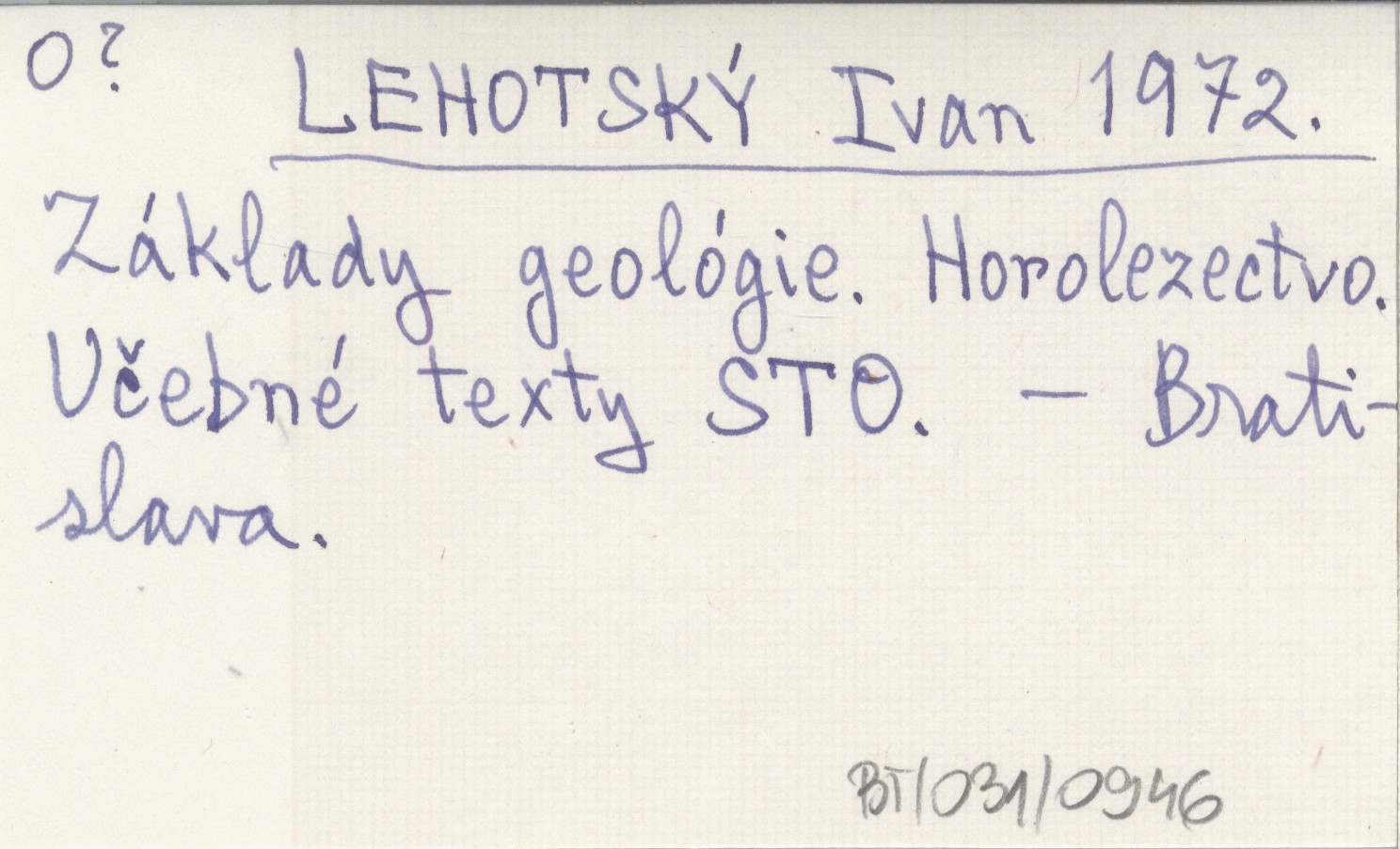LEHOTSKÝ Ivan 1972 Základy geológie. Horolezectvo. Učebné texty STO.