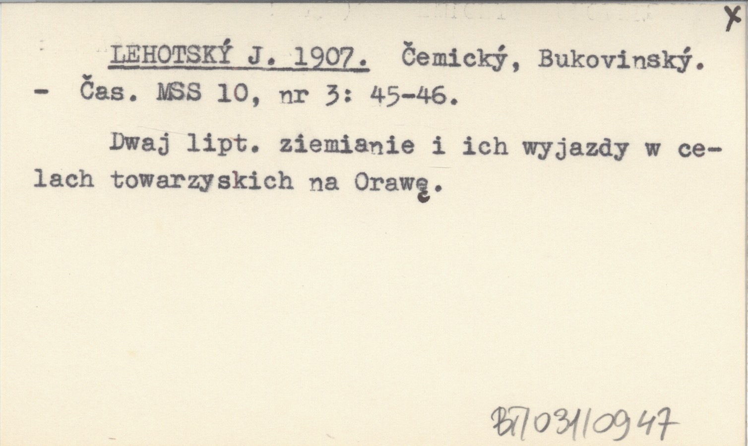 Časopis Muzeálnej Slovenskej Spoločnosti, 10, nr 3: 45-46. Dwaj liptowscy ziemianie i ich wyjazdy w celach towarzyskich na Orawę.
