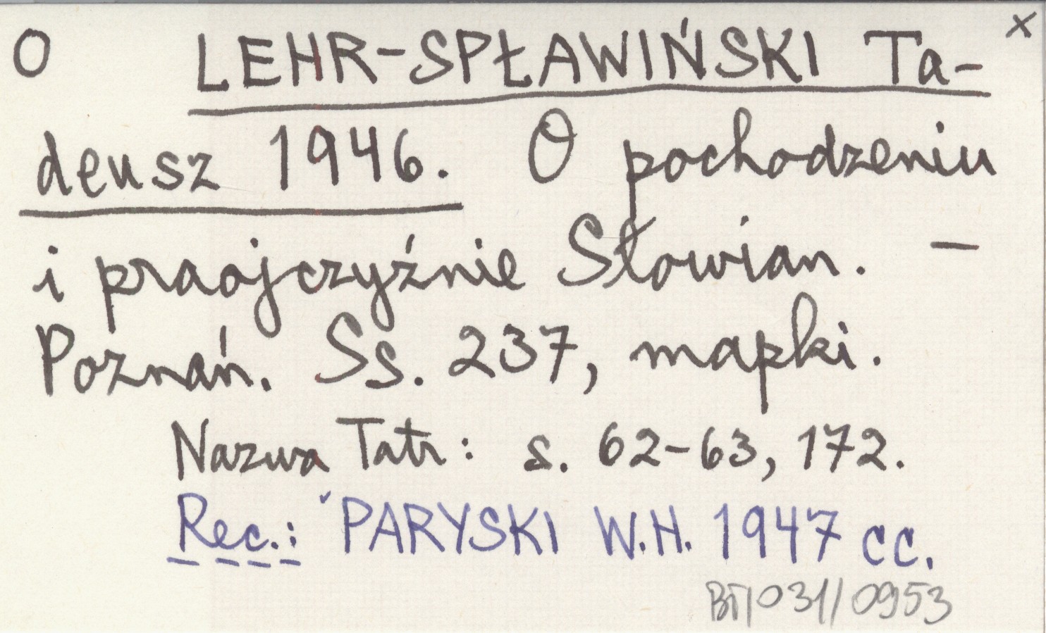 Poznań , 237 s., mapy. Nazwa Tatr: s. 62-63, 172. REC: PARYSKI W. H. 1947 cc