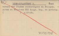 LEHR-SPŁAWIŃSKI T. État actuel des études onomastiques en Pologne.