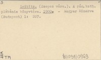 Leibitz. (Szepes várm.). A róm. kath. plébánia könyvtára. 1900
