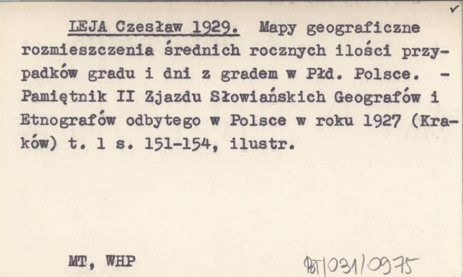LEJA Czesław 1929 Mapy geograficzne rozmieszczenia średnich rocznych ilości przypadków gradu i dni z gradem w Płd. Polsce.