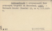 Lekkomyślność i nieznajomość Tatr przyczyną tragedii na Świstówce. 1957