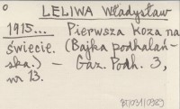 LELIWA Władysław 1915... Pierwsza koza na świecie. (Bajka podhalańska).