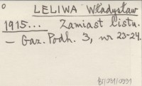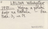 LELIWA Władysław 1915... Wojna a polski dwór na Podhalu.