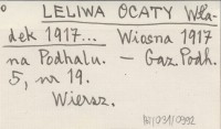 LELIWA OCATY Władek 1917... Wiosna 1917 na Podhalu.